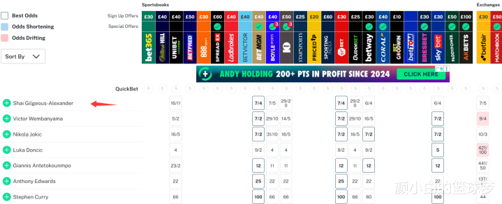 这三场比赛后SGA的MVP赔率冲到了第一的位置,休赛期东契奇是MVP赔率第一,目前SGA卫冕常规赛MVP的赔率已经是断崖第一,文班亚马第二,约基奇第三,东契奇掉至第四。