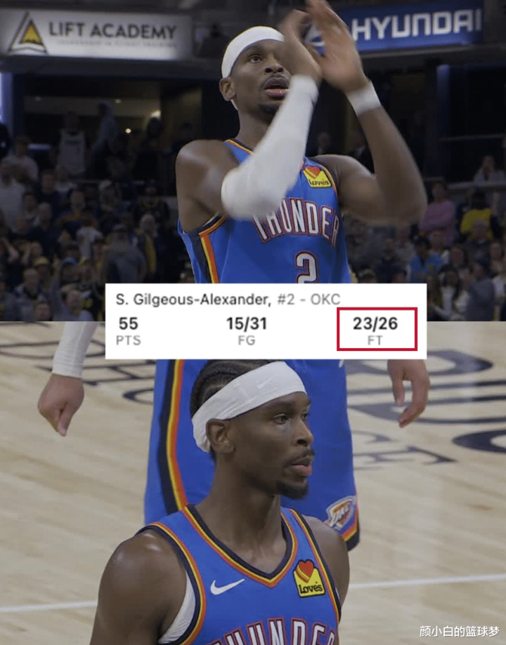 目前SGA最饱受质疑的一点就是罚球次数了,对阵步行者一战全场罚球26个,对阵火箭一战下半场12个罚球,目前三场比赛场均14.7个罚球联盟第一,他上赛季就因为罚球多被称之为罚历山大。