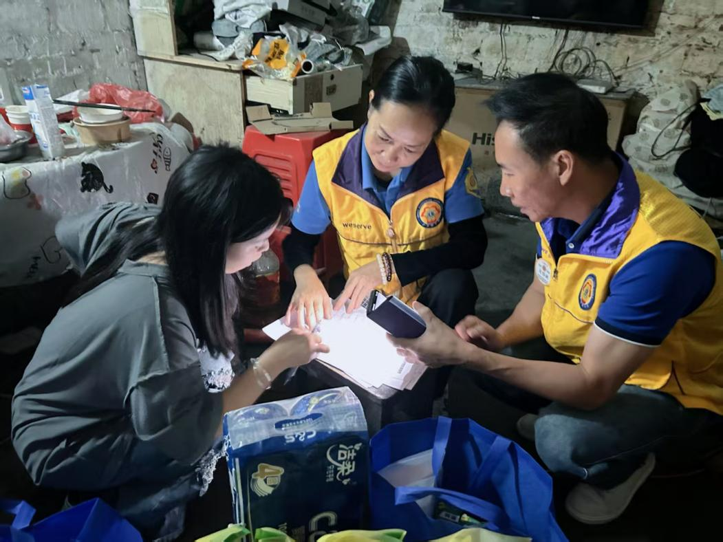 服务中,会员们分2组走访6户残障困境儿童。除了送上营养品、食用油等生活补给品,他们还详细了解孩子们目前的生活与学习状况,收集亟待解决的困难,鼓励孩子们保持乐观向上、微笑面对生活。同时向家长和监护人传递正面力量,鼓励他们积极面对挑战。走访结束后,各组会员集合总结服务感受,为后续帮扶积累经验。